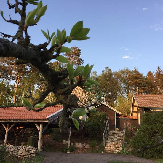 Summer house in Hanhals for rent, furnished, from now until 2026-03-31 by agreement. The house consists of 2 bedrooms, a TV room, a living room, a kitchen and a toilet with a shower. Cold rent: 7,500 SEK/month; electricity costs are additional. The house is located approximately 200 m from the sea and sits on a sloping plot, with a garden on different levels. A small carport is available. The nearest bus stop is about 3 km away. Service fee for the tenant: 371 SEK.