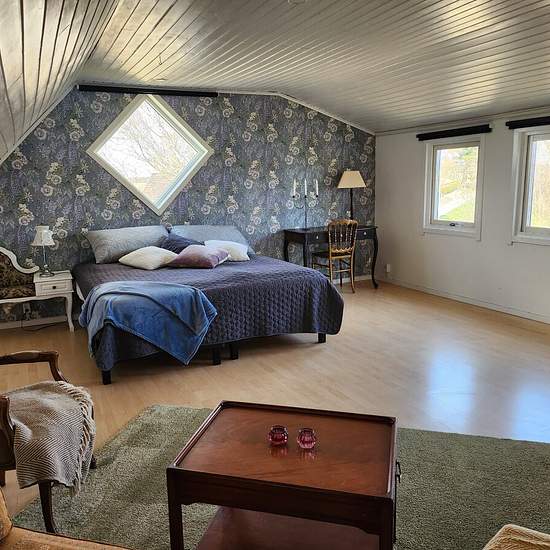 Charming lakeside house with a fantastic location by Söderåsen and its own beach plot on Lake Bonnarpssjön. A unique location for someone who loves nature and wants to enjoy the absolutely fantastic view over the lake and the surrounding greenery. There is a large deck/terrace facing the lake and a private jetty. The house was partly renovated in 2024 and feels fresh with new upgrades. The kitchen and living room are open-plan with a newer stove/fireplace with glass doors (placed in the middle of the house). On the ground floor there is addi...