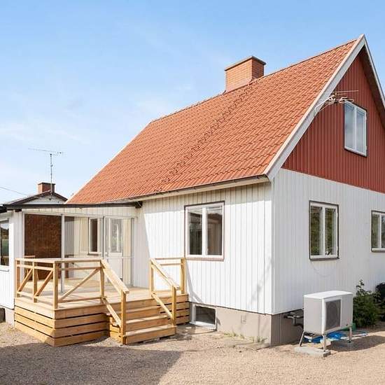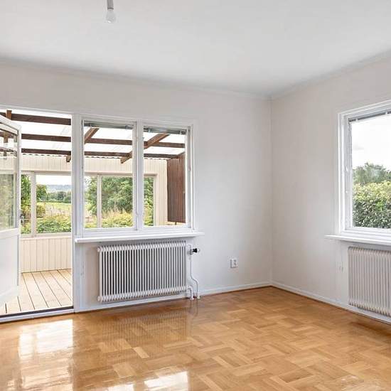 Welcome to rent this tastefully renovated villa in the quiet and pleasant Ljungbyhed! The house is one and a half storeys with a basement and has undergone an extensive refresh over the past year with new surfaces, two fully tiled bathrooms, a modern kitchen and a new heating system (air-to-water heat pump). On the entrance level you are met by a bright hallway, a living room with an open fireplace, a dining room and a kitchen in a practical circular floor-plan. From the living room you can access the conservatory with new decking — perfect...