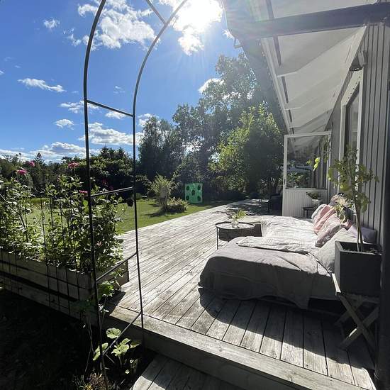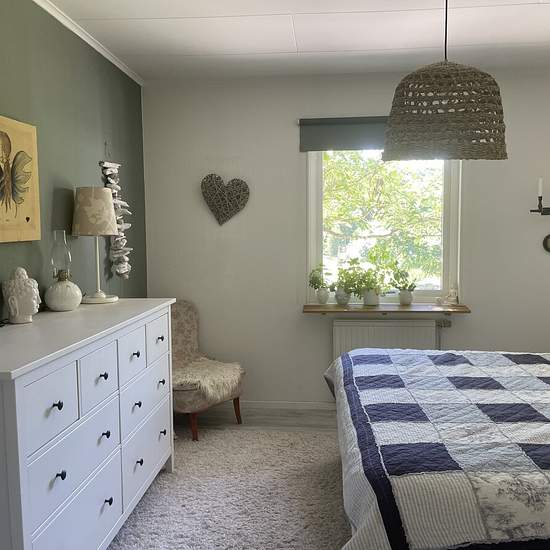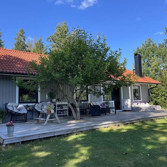 House in a rural setting close to the sea and the forest. The house is practically laid out, with an open-plan layout between the kitchen and the living room. The house has been used as a holiday home and is being rented out due to a separation. The house is within walking distance of a bus stop and the sea. Service fee for tenant: 742