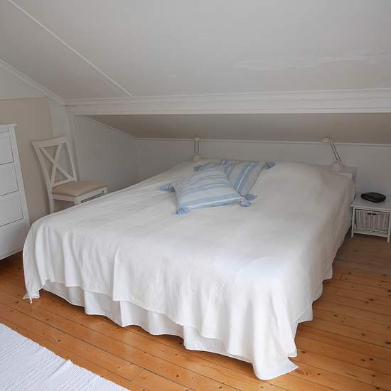 The house has a very good location in the old, nice part of this charming community. The house is bright, genuine and tastefully furnished over one and a half storeys. On the ground floor there is: - a charming, spacious kitchen with modern equipment (dishwasher, convection oven, hob, fridge/freezer, microwave, coffee maker and toaster etc.) - Living room with wood-burning stove, TV and seating area (sofa bed, 135 cm mattress) - Bedroom 3/Family room (bed 90 cm and bed 80 cm, extra bed 80 cm) - Modern, small, fully tiled bathroom with WC an...