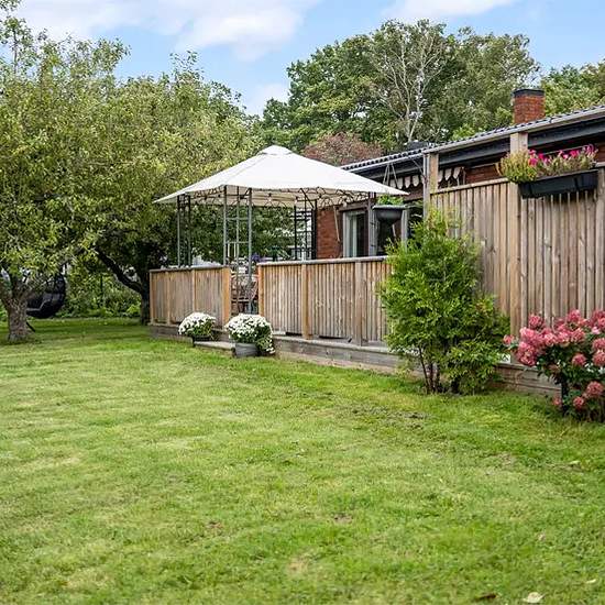 Beskrivning Fint renoverat enplanshus med fantastisk tomt. Stort vardagsrum, badrum, gästtoa och 3 sovrum med mycket förvaring. På tomten finns två växthus, stor altan, pergola, bubbelpool, flera äppelträd och stora gräsytor. Parkering för 2 bilar samt tillgång till gästparkering. I samfälligheten finns tennisbana, lekpark samt fotbollsplan i anslutning. Mycket barnfamiljer. Ligger nära Willys, Nordic wellness, pizzera, padelhall och sportanläggning samt buss och tåg. Ett stenkast till kantarellskog och fin badsjö. 1 min ut till motorvägen. ...