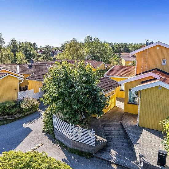 In a safe area, with proximity to both nature, the sea and good transport links, lies this two-storey townhouse. The sea with bathing spots and beautiful nature trails is reached in only a three-minute walk. The commuter train station is about a 15-minute walk away and offers direct connections to Södra Station, Stockholm City and Odenplan. Bus connections to the commuter train station and Nynäshamn town centre are also about a three-minute walk away. The fee includes both a garage space and a fiber connection. The home is an end unit in a...