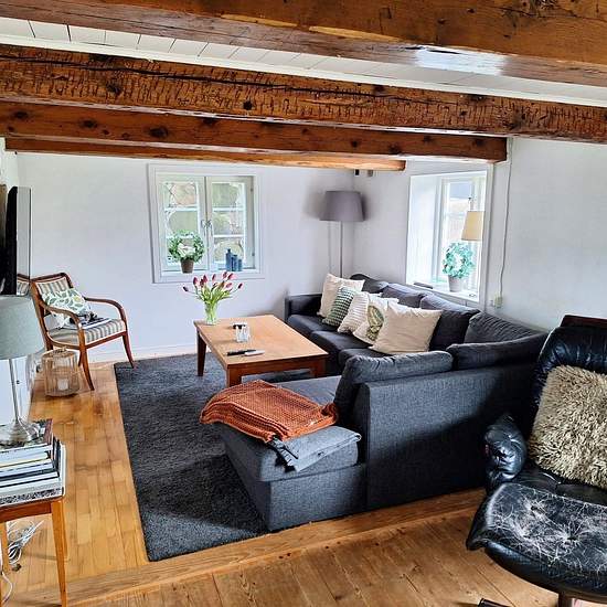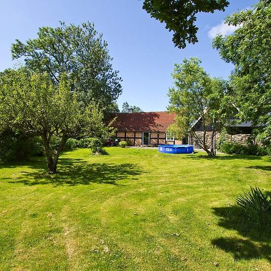 Welcome to our charming Skåne farm – Gamlegård – on the Kulla Peninsula. The property is located about a 15-minute drive north of Helsingborg in Skåne. The house was built in the late 19th century and has been continuously renovated over the years. The beautiful, green garden with a 4 x 8 meter pool is perfect for barbecues, play and relaxation. The "old house" (living room and kitchen) is equipped with a wood-burning stove and an air-source heat pump for heating. The ceiling height here is approximately 200–207 cm between charming ceiling...