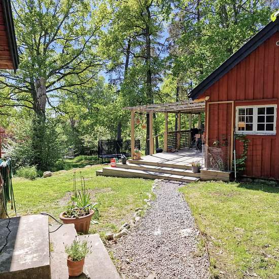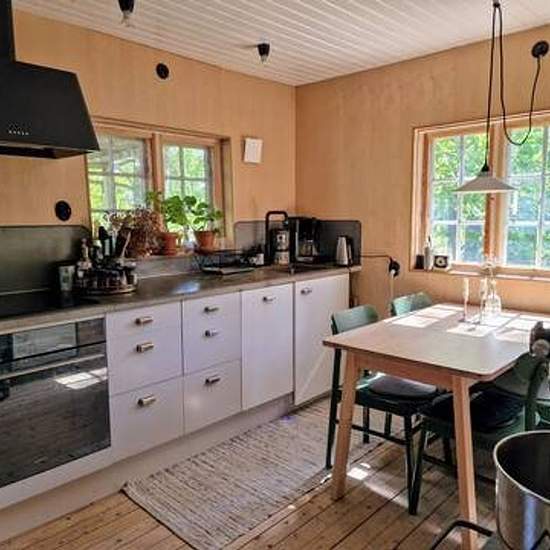 Two cottages on a large plot in the middle of nature yet still close to town and bathing beaches. The property consists of two separate cottages that together form a well-equipped and homely home. One cottage offers a kitchen, dining area, living room and a terrace under a pergola; the other cottage offers three rooms, a fixed office space and a bathroom with WC, washing machine and drying cabinet. The property has a larger plot of just over 1,800 m² with a barbecue area and space for recreation. Enjoy the peace where nature is your neighbo...