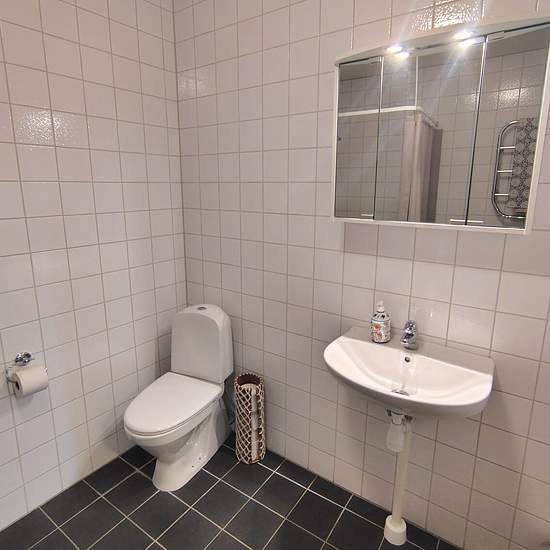 Nybyggd bostad som blev färdig under sommaren 2025. Dock fanns badrummet sedan tidigare (ca 10 år gammalt). Egen ingång in i en hall/groventré med tvättmaskin, vask, städskåp. Rakt fram ligger en helkaklad dusch/WC - allt med vattenburen golvvärme. Till höger ligger ett stort och rymligt, fullt utrustat kök, ca 35 kvm med en luft-luft värmepump. Här finns bl.a. vask, diskmaskin, induktionshäll, dubbla inbyggda kyl/frys, köksfläkt, matbord, mm Från köket finns en korridor med 3st sovrum (till vänster i korridoren ett familjerum på knappt 20 ...