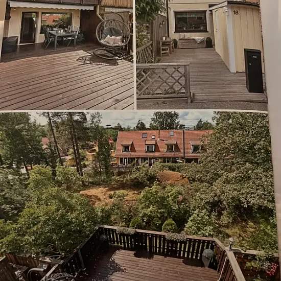 Nice two-storey townhouse in a quiet area. Two bathrooms and three bedrooms. Well-designed kitchen with space for a large dining table for six. Bright living room with access to a patio. Balcony on the upper floor. Within walking distance to the town centre and the commuter train (approx. 20 minutes to Stockholm city) and buses. Broadband, heating, water, electricity, insurance and a garage space are included in the rent. Available for rent while I await the sale of my home.