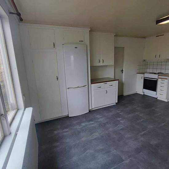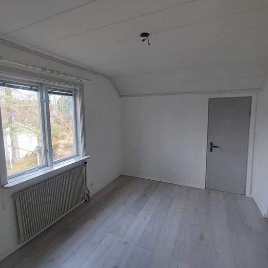 Description: Two-story house for rent near Slottsbron in Grums. 94 square meters, arranged as 4 rooms and a kitchen (4 ROK), of which 3 are bedrooms; a small garage and a storage shed are included. Rented for 6,900 SEK/month as cold rent. Geothermal heating keeps operating costs low. Fiber-optic internet is available. Two months' deposit required. Service fee for tenant: 341 SEK