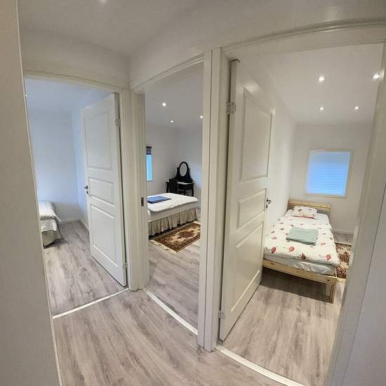 Entire villa in Sollentuna offering three spacious bedrooms, a large bright living room, a fully equipped kitchen, and a bathroom. The house also includes a large, pleasant patio, perfect for socializing and relaxing. The villa is located in a quiet and popular area with excellent transport links — you can reach central Stockholm in about 15 minutes by public transport. Service fee for tenant: 898