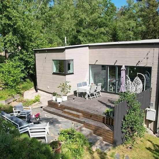 Unique architect-designed gem in the expanding Flemingsberg! Welcome to a villa beyond the ordinary in Solgård, Huddinge! Here you are greeted by exciting architecture, generous ceiling height, and large window sections that bathe the home in natural light. With its thoughtful layout and open spaces, this is a home for those seeking both style and function. Highlights: Large spaces: 4 spacious bedrooms – perfect for a large family or guests. Flexibility: Large extra room on the entrance floor that can become your new studio, home gym, or hob...