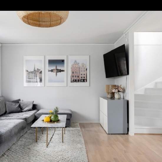 Möjligt att hyra depositionsfritt genom Samtrygg. Månadskostnad: 19550 kr. ________________________________________________________________ Snabbast bokar du visning genom att följa denna länk till Samtrygg: Här hittar du även fler bilder och mer info. ________________________________________________________________ Radhus i Täby Kyrkby uthyres minst 7 månader. Tidigare inflytt ev möjligt. 1 stort sovrum och 2 små. 1 badrum med badkar och ett mindre badrum med dusch. Kök och vardagsrum med utgång till uteplats och liten trädgård...