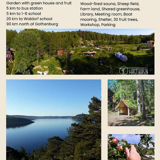 A house in the countryside at the end of a road with a large forest behind it and 800 meters to the sea (Koljöfjorden). The house is bohemian and old and only has access to a dry toilet. It is located on a property covering 14 hectares and is partly managed by a foundation whose purpose is to create a "tiny house village." The accommodation is suitable only for practical "do it yourself" people with an interest in gardening and strong neighborly community. On the site there are many small houses and a lot of activity in the summer, and two o...