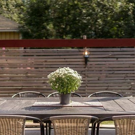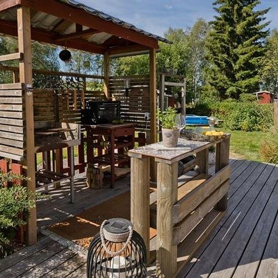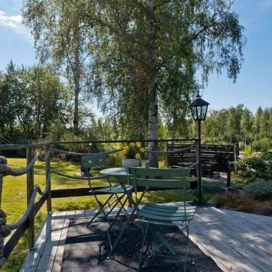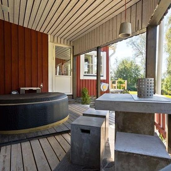Villa for Rent in Ursviken A villa from the early 20th century with well-preserved turn-of-the-century details. The house includes a south-facing garden with privacy from all directions. The plot has plantings, gravel paths, and several different outdoor spaces to be able to enjoy the sun throughout the day. Outdoor spaces: Large south-facing deck with outdoor kitchen. To the west, there is a covered deck with a sunken hot tub. Other areas: Glass-enclosed veranda and a sleeping cabin with a smaller deck and an associated barbecue area. Are...