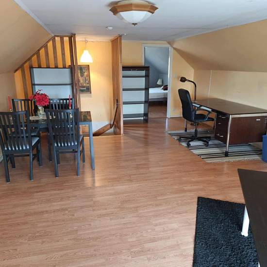 The rooms are on the upper floor. The balcony is also accessed from the living room. The bathroom with toilet is on the ground floor. Also the kitchen, which we share when we’re at home. On the property there is space for at least 2 cars and it has a fence around it. There is also the possibility to barbecue on our terrace. We have a gym with various exercise machines that the tenant may use. We have two dogs that have never been upstairs. The rent includes electricity, water, waste disposal, and internet. If interested, we will send additio...