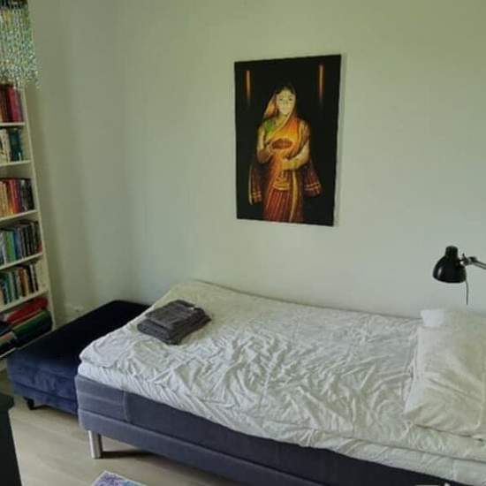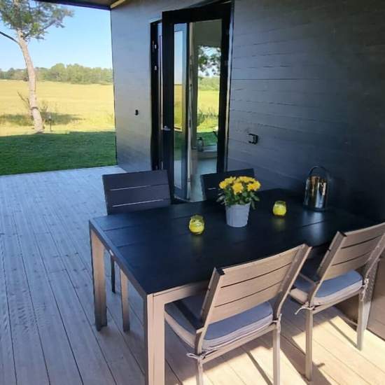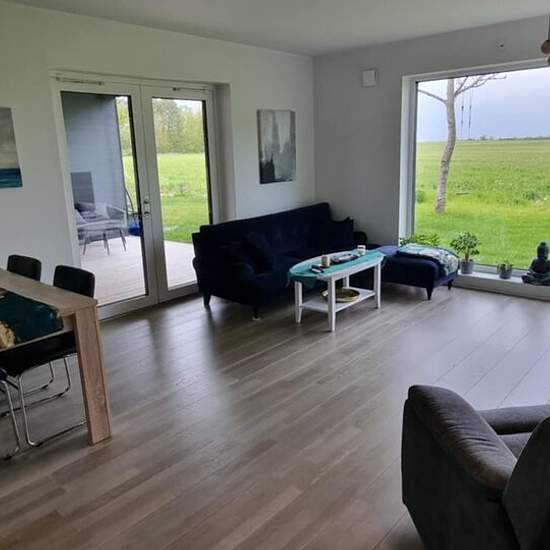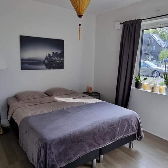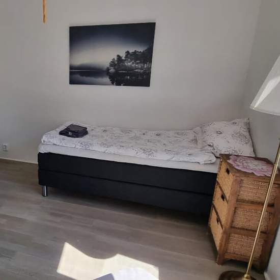 Fantastic, beautiful and modern apartment with a view of its own garden and a meadow. Feels like a house. 3 bedrooms, one of which has a double bed. Open-plan kitchen connected to the living room. Covered terrace with outdoor furniture. Everything is included in the rent: sheets, towels, etc., electricity, heating, water, internet, TV and private parking. All you have to do is move in! 5-minute walk to the bus stop on the route between Visby–Tofta–Klintehamn. Service fee for tenant: 594