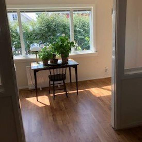 Welcome as a student with a study certificate to rent a house on a yearly basis at Östra Stranden, featuring a beautiful garden with fruit trees. It is close to everything: the university, the beach, shopping, and public transport. In the summer, we live in the house ourselves. The house is rented out to two students, each paying 4500 SEK + electricity and water per month. Free Wi-Fi and parking are included. Service fee for tenants: 222 SEK.