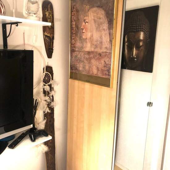 We have two terrariums in our son's room with a bearded dragon and a corn snake. We also have a Bengal cat. The place is located in Farsta centrum, 2 minutes from the subway. The room has a 140 cm wide bed with a new mattress. There is a laundry room in the building. Spacious wardrobe measuring 2.40 x 1.0 x 0.60. Electricity and Wi-Fi are included in the rent. Playstation 3 + 40-inch TV. Bed linens and towels are included.