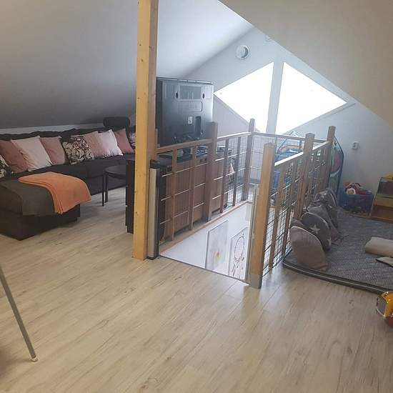 5–6-room apartment on the upper floor of a villa, with its own separate entrance. The apartment consists of 3 smaller bedrooms and 1 larger bedroom, a living room with an open-plan kitchen area, a shower room and an extra toilet. Large plot around the house and a small sparse wood next to it. The entire plot is fenced and child-friendly. Good preschool and a grades 0–6 school nearby. Good transport links to Gnesta (bus stop approx. 300 m) and the trains to Stockholm. For more info and/or to book a viewing, please email a bit about yourself. ...