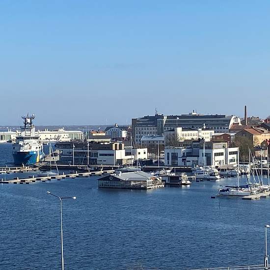 A nice apartment with 5 rooms and a kitchen (115 m²) on the 2nd floor with a wonderful view over the guest marina. Private patio. Elevator. Access to a courtyard patio. Fresh laundry room with good capacity. Newly renovated bathroom. Central location on Pantarholmen in Karlskrona. Close to buses, trains, the university, the hospital, the town centre and water in every direction. For the slightly larger family who wants to live centrally with a sea view.