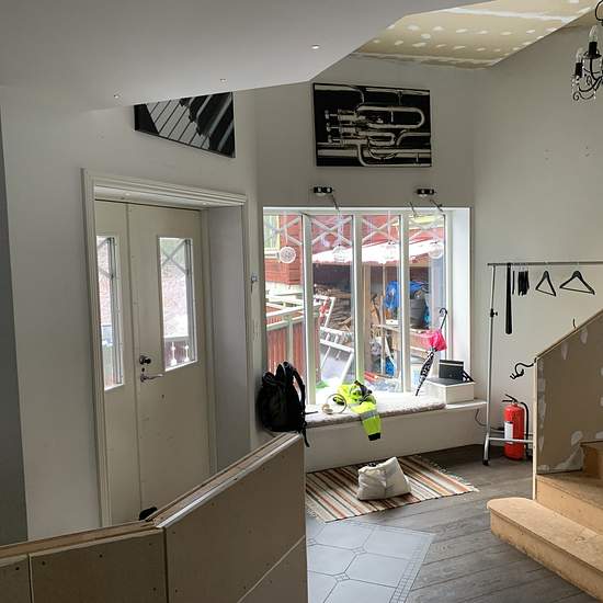 Apartment in a detached house. 4 bedrooms as well as a kitchen/living room with an open-plan layout. Oak floors throughout the apartment. 3 balconies. 1st floor: kitchen/living room, master bedroom, laundry room, walk-in closet, bathroom (with double sinks) and hall. 2nd floor: three bedrooms, toilet and common/social area. The kitchen has two ovens (one "sous vide"), a kitchen island and two sinks. Large fridge/freezer ("American" refrigerator). Bus 847 to Ösmo/Västerhaninge 200 meters away. Furnished or unfurnished. When the pictures were ...