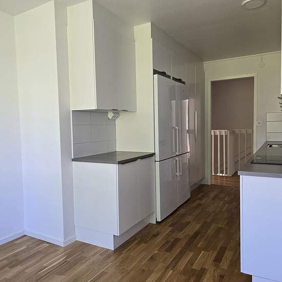 Rymlig 5:a i två plan med trädgård – perfekt för familjen som vill ha nära till både natur och stad Välkommen till en ljus och rymlig femrumslägenhet om 142 m² i två plan, belägen i marknivå med nedre våningsplan delvis under mark – en smart sutteränglösning som ger känslan av att bo i radhus, med egen trädgårds yta och gott om plats för hela familjen." Bostaden genomgick en omfattande renovering 2021 och erbjuder moderna bekvämligheter i en ljus och trivsam miljö. Köket är utrustat med diskmaskin, och i det separata tvätt utrymmet finns bå...