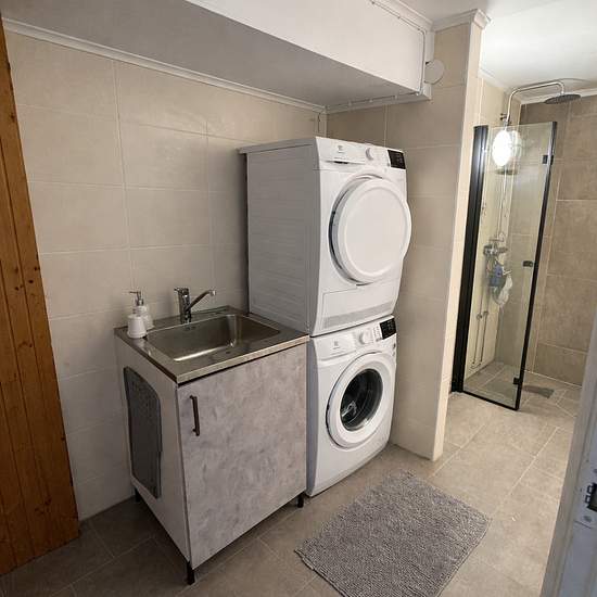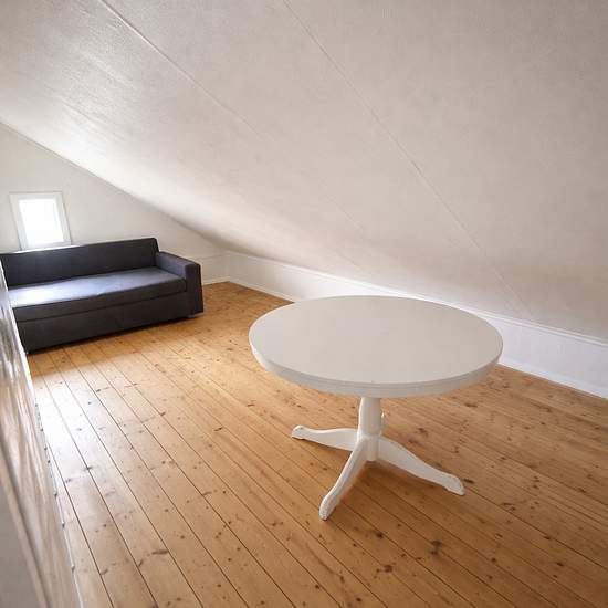Now available for rent is a large, well-planned two-level apartment of approximately 120 sqm. On the lower level there is a kitchen, a living room with access to a balcony, and a bedroom. The upper level offers several rooms as well as additional spaces with sloping ceilings that provide very good storage opportunities. The apartment has a newly renovated bathroom with a large sauna and its own laundry area equipped with a washing machine and drying facilities. In addition, there are two separate toilets, one on each floor. The apartment als...
