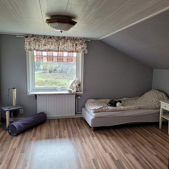 Horse farm/farm for rent in a pleasant area. Ryssby is a nice locality with both an ICA (grocery store) and school and preschool, and is close to both Ljungby and Växjö. The property is secluded but there are neighbors nearby. Large garden with opportunities for cultivation. Nice riding trails and close to an indoor riding arena. Loose housing for horses and paddocks. Heating by wood-fired boiler with associated tanks and direct electric heating. There is a working tiled stove. For rent to a responsible person/family with stable finances. Pe...