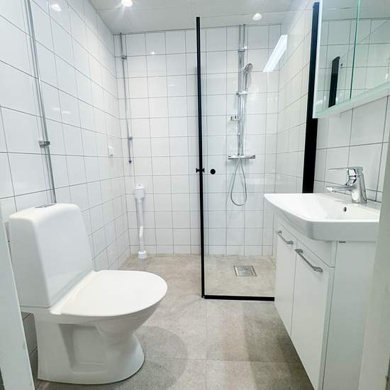 There is a large apartment here that is partially renovated with new floors, bathroom and kitchen. An electricity fee is added, currently 250 SEK/month. Tele2's basic TV channel package and internet (10/10 Mbit/s) are listed as a charge on the rent statement, currently 235 SEK/month. A shared laundry room is available in the basement.