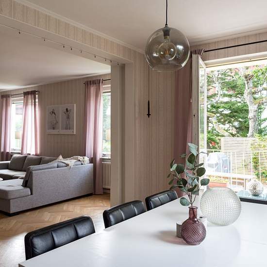 Mycket representativ våning centralt i anslutning till Djäkneberget. Lägenheten är på 118 kvm men till lägenheten hör ett 2 garage ena är just nu ett biorum. Två balkonger. Parkering ingår.