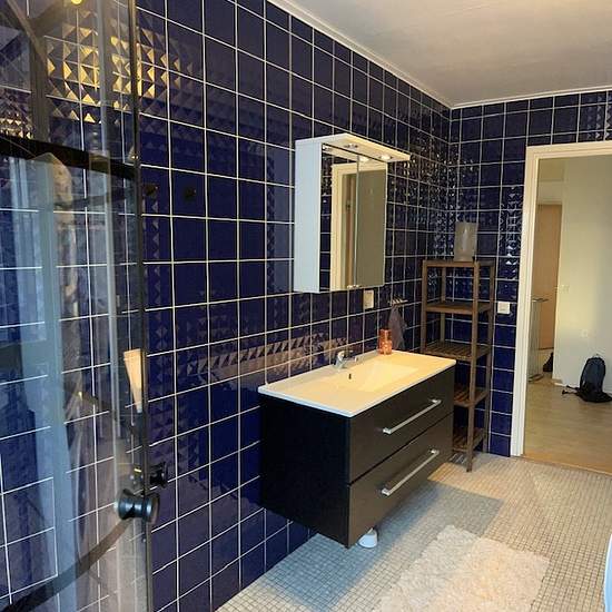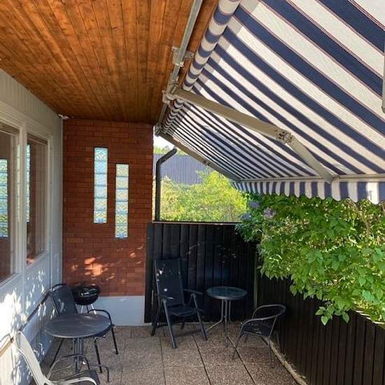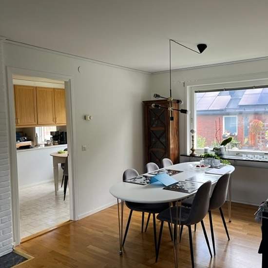 House near the sea in Österskär 5 rooms and kitchen on the entrance level of a villa in a quiet area, 5 minutes to the beach, the Roslagsbanan (35 min to Stockholm city) and Åkersberga center. Living room with fireplace, 4 bedrooms, large bathroom (washer/dryer) and a separate toilet. Private secluded part of the garden with a south-facing patio, and 2 outdoor parking spaces. The rental period is flexible, shorter or longer. Internet, garbage collection, and water are included in the rent. Electricity/heating up to 3,000 SEK/month is include...
