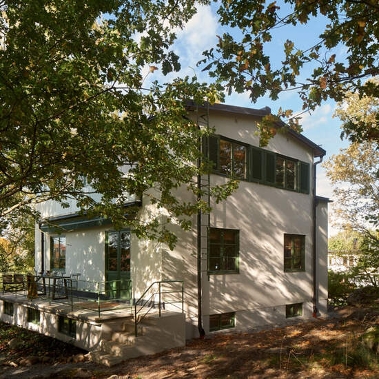 HUset ligger lite gömd i grannskapet. En smal grusväg leder in till tomten där den vackra, vita villan tittar fram i en glänta. Villan som firar 90 år är helt nyrenoverad såväl exteriört som interiört, och också ovanligt välbevarad. Fastigheten har genom åren haft bara tre ägare, som alla gått varsamt fram och moderniserat klokt. Nedervåningen är sällskapsvåningen, med kök, matsal, och vardagsrum, medan övervåningen är av mer privat karaktär med tre sovrum och badrum. Ett mindre sovrum finns även på entréplanet (fd jungfrukammaren), vilket g...