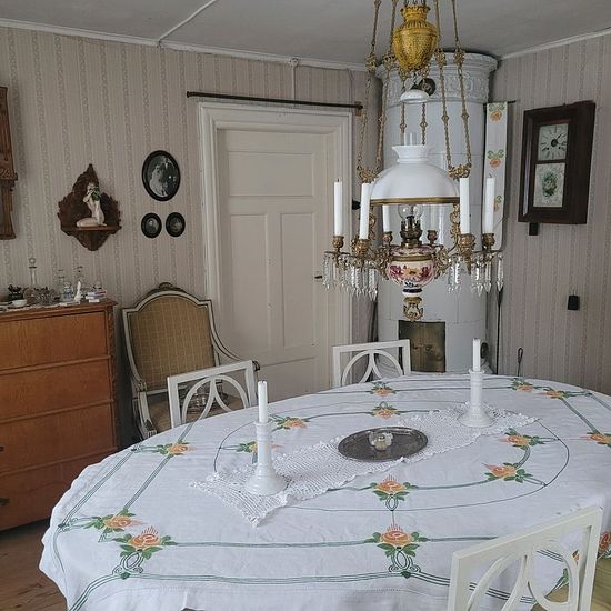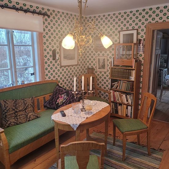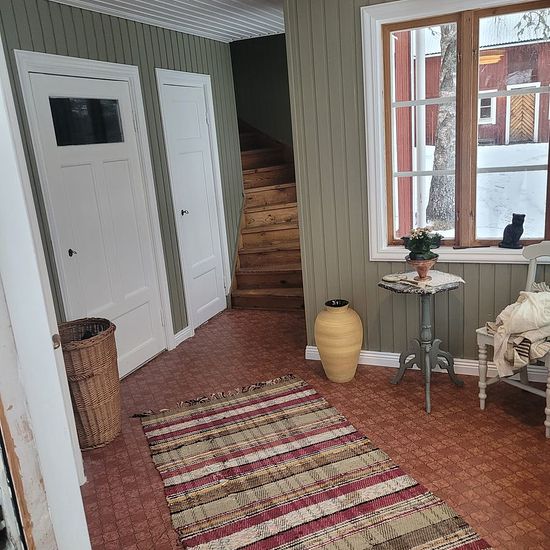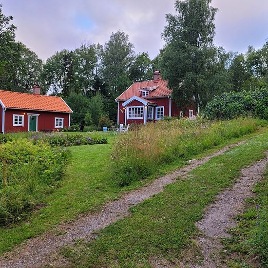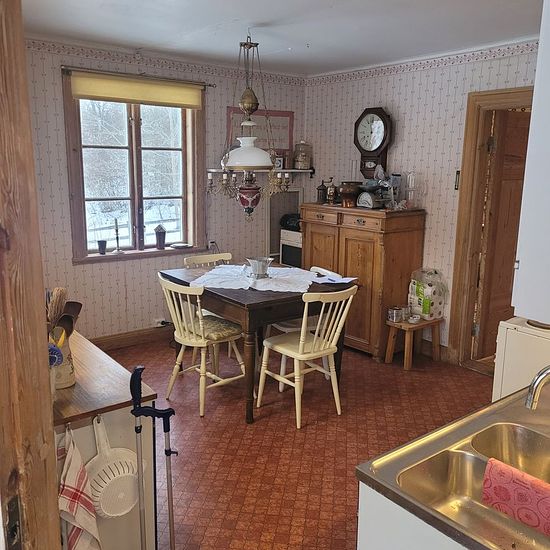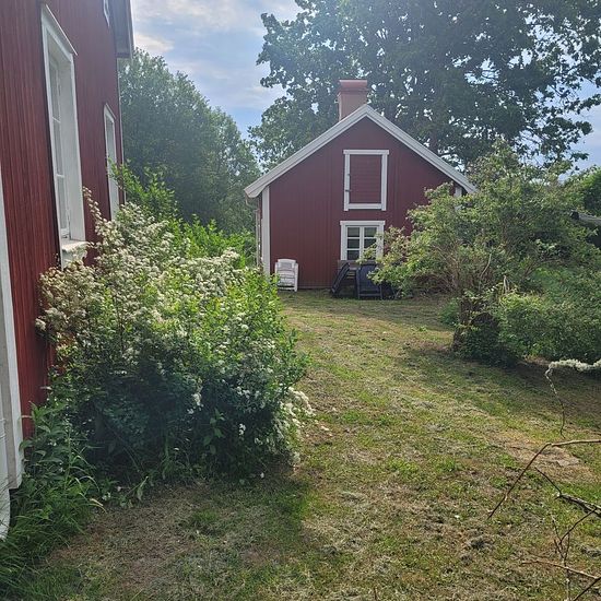 House between Alunda and Gimo for rent Main house: 74 m2, three bedrooms, bathroom, kitchen with wood-burning stove, two tiled stoves, electricity, water Guest cottage: 49 m2, two bedrooms, large room with open fireplace, electricity, water, small kitchen, loft Other: Water from own well, root cellar, barn, outhouse, large plot of 3,000 m2 Service fee for tenant: 495