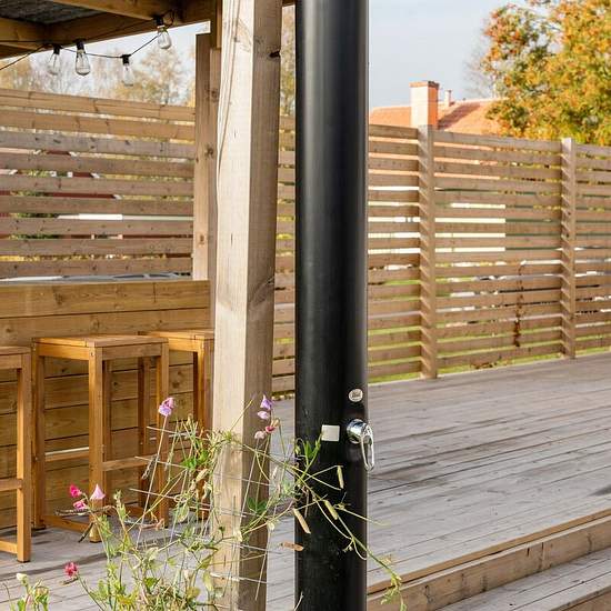 Works well for companies for their staff. Here you live idyllically close to the sparkling waters of the Letälven with cozy swimming spots, surrounded by deep forests full of blueberries and mushrooms. For the active there is a network of cycling and hiking trails that take you through beautiful nature, and for those seeking peace there are quiet moments by the river and the lakes or on the sun-warmed deck. After a day outside you can enjoy a sun-heated outdoor shower on our generous 80 m² deck, equipped with a practical outdoor kitchen fo...