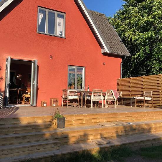 1920s villa, centrally located in a quiet residential area in Malen in Båstad. Close to shops and a bakery around the corner. A stone's throw from Båstad Sportcenter and within walking distance of the harbour area. 500 m to the beach. The villa has three bedrooms, two of which are on the upper floor, where there is also an office with a sofa bed. On the ground floor you enter a hall/library, and here is also the large living room with dining area and a fireplace. From the living room you step directly out onto a newly built wooden deck and ...