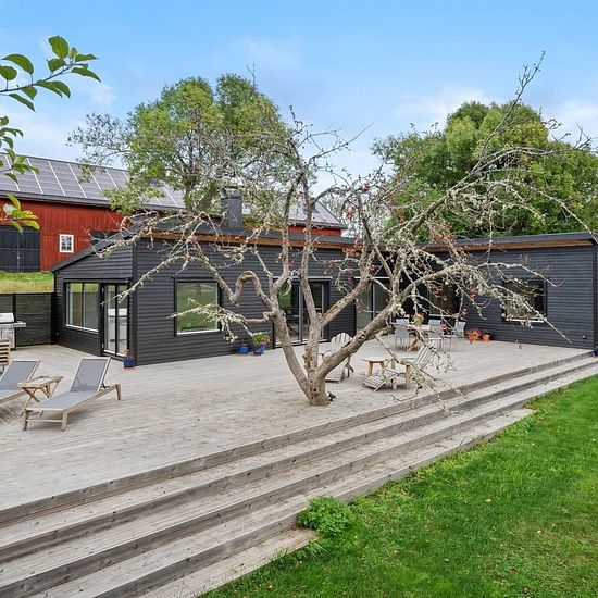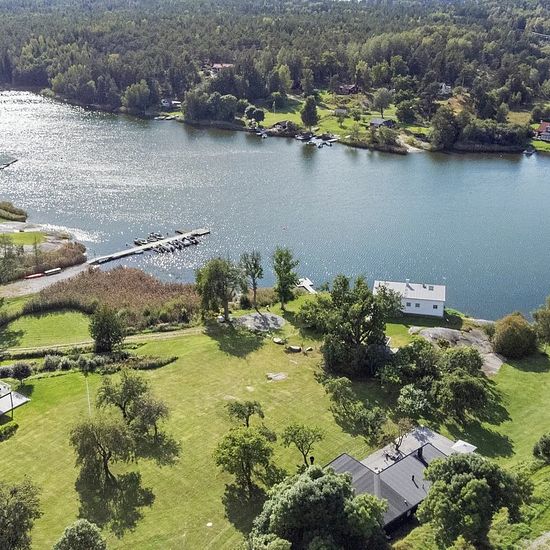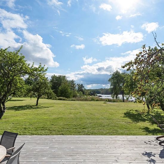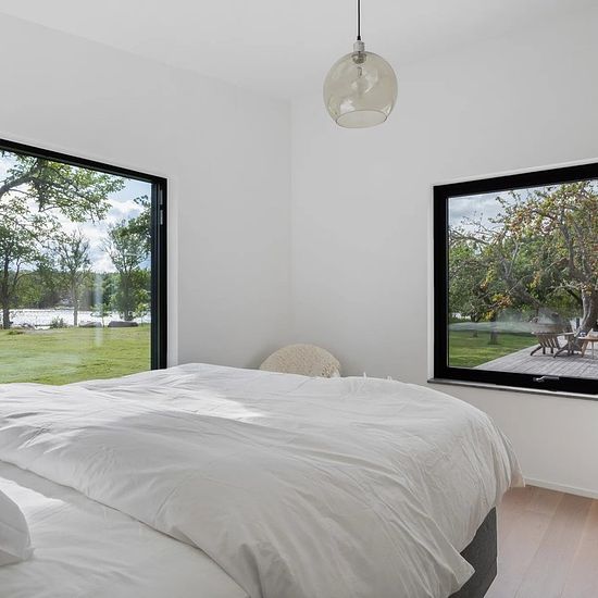Modern newly built villa of 139 sqm on one level with exclusive material choices and very high standards. Carrara marble, limestone, whitewashed wooden floors, etc. Lakefront property where the main building is 50 meters from the water and facing the best west direction. Sun all day on the large terrace. Located in an authentic park environment with old apple trees and a large lawn. Pier for boat and swimming about 100 meters away, visible from the house. For rent for 9 months with possibility of extension, pets and smoking not allowed in th...
