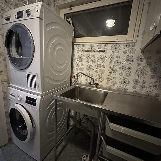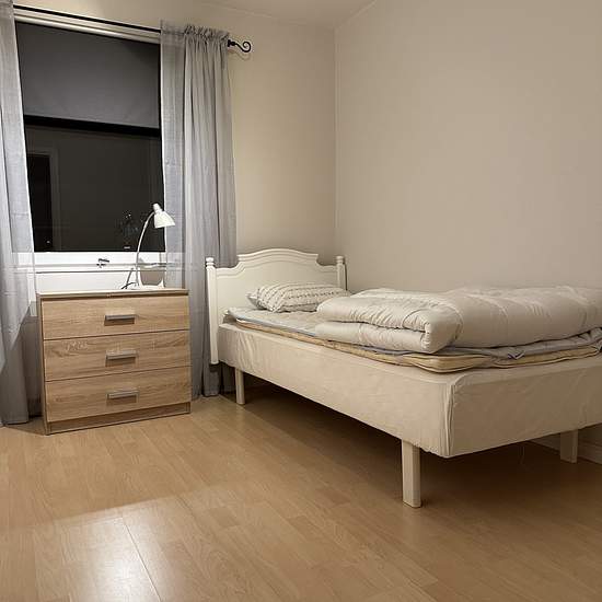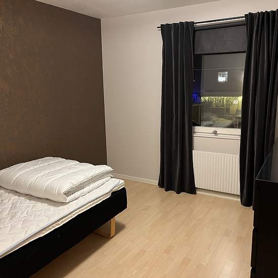 Electricity, heating and broadband are included in the rent. Rental on an annual basis or for shorter periods of less than one month by agreement. Description: 4 bedrooms, 2 bathrooms with showers and toilets, kitchen and living room in an open-plan layout, as well as a laundry room with washing machine and tumble dryer. Very nicely fully renovated and furnished townhouse close to forest and nature. Water, heating and a garage space with an engine-heater outlet are included. Glass-enclosed patio and a small lawn, as well as two additional wo...
