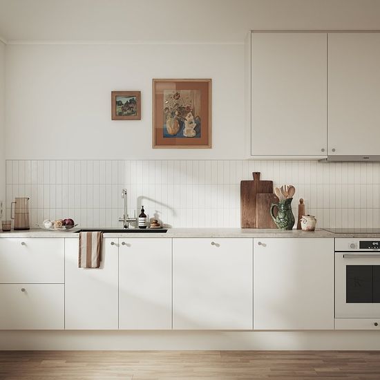Townhouse with a parking space. Electric car charger on its own façade included at no extra cost! Well-planned two-story townhouse with social areas on the entrance floor and a private section with bedrooms on the upper floor. Throughout high standard with Marbodal kitchen, Bosch appliances, and oak parquet flooring. Energy-efficient house built to obtain the Nordic Swan Ecolabel. Middle house shifted in the row with a freer terrace and corner location at the front yard. Garden facing northeast towards nature. One parking space on a privat...