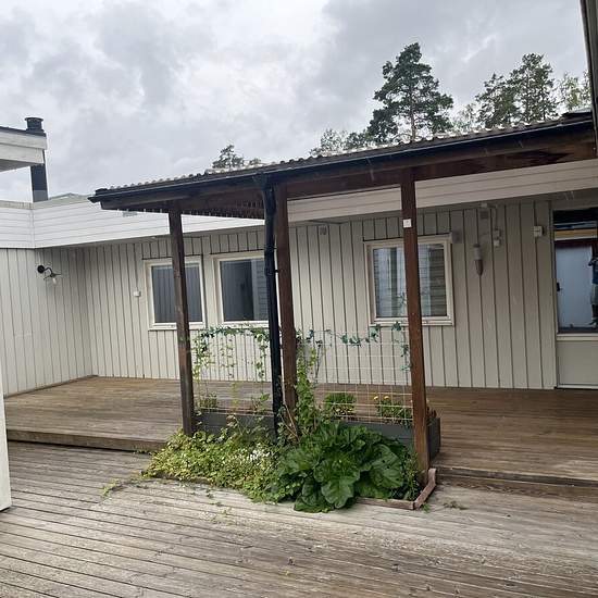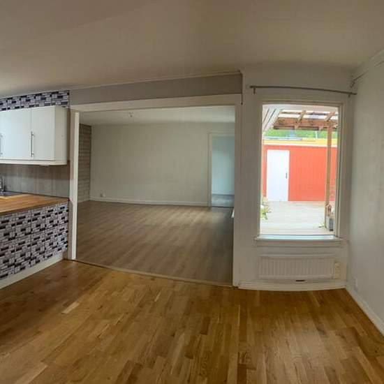 Single-level townhouse for rent in Haninge. The house is located between the popular and child-friendly areas Svartbäcken and Ramsdalen. 121 sqm with 4 bedrooms, 2 fully renovated bathrooms, garden/private courtyard with direct access from the living room, guest cottage, garage, close to daycare, preschools, elementary schools, high school, gym, swimming and ice rink, Tyresta National Park, golf clubs, supermarket (Port 73), public transport and all amenities. Direct bus to Gullmarsplan (30 minutes) departs from stops about 100 meters from...