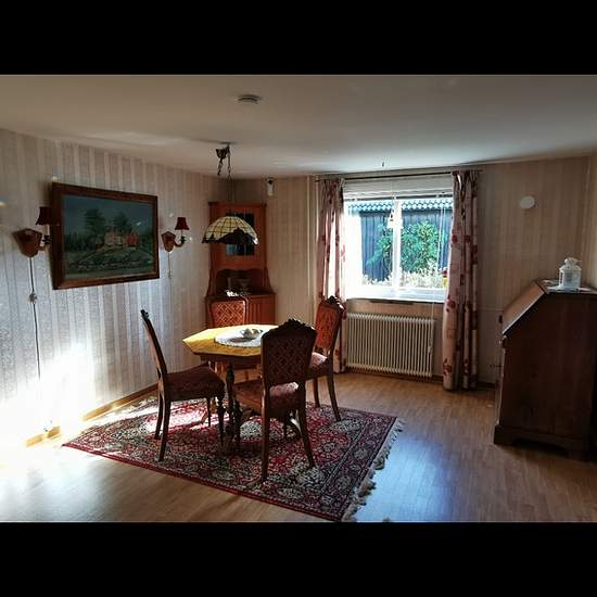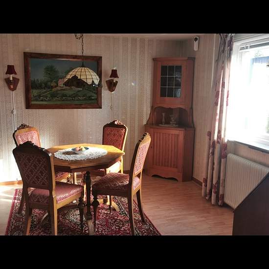 Cozy house with a large south-facing garden and plenty of parking. I am renting out my house because I am not ready to live there right now. The house has two floors and has 4 bedrooms, a large living room and a kitchen with seating for 6 people. There are two bedrooms on the upper floor; the rest are on the ground floor. The ceiling may seem low in the basement and on the upper floor since the house is old. On the lower floor the ceiling height is better, about 220 cm, and in the living room it is 240 cm. The house is 100 meters from Häst...