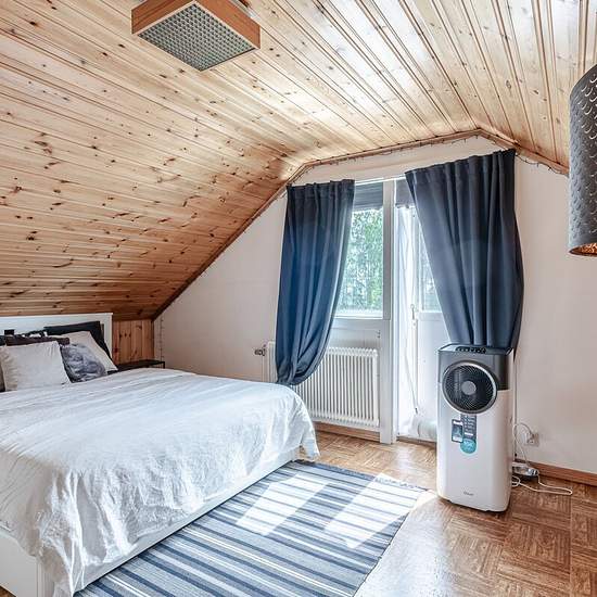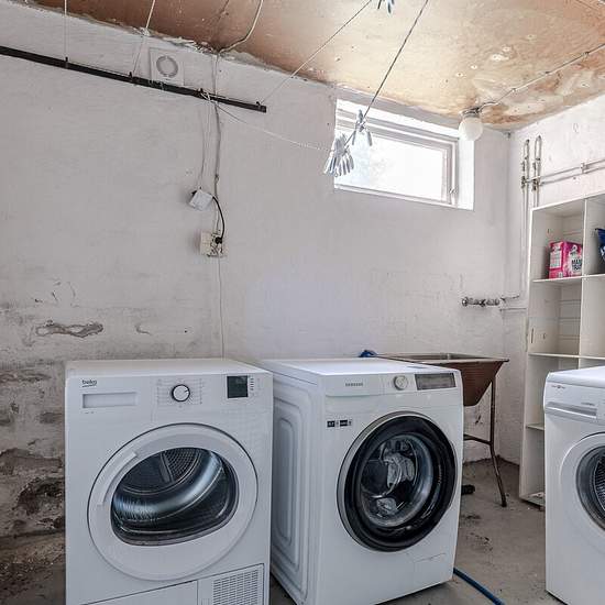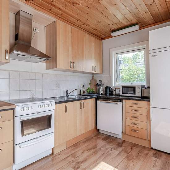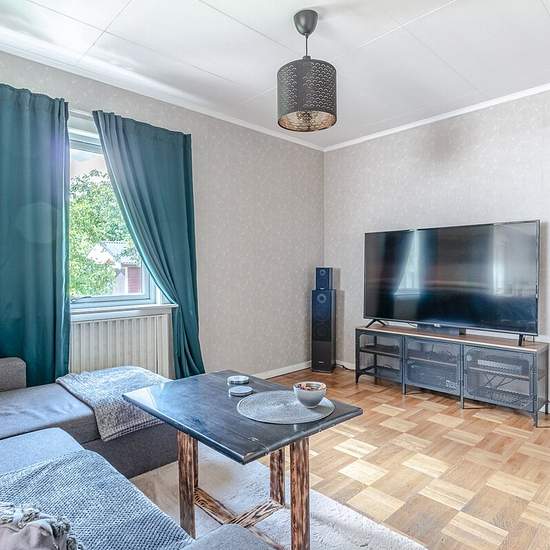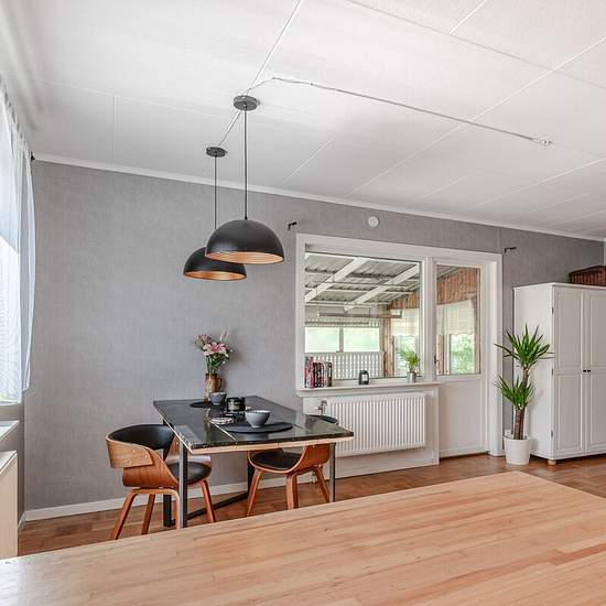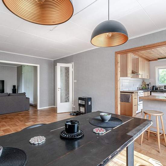 Villa of 115 sqm + basement in the nature-close and quiet Robertsholm, close to several bathing spots and a preschool, for rent. The house stands on a 750 sqm, easy-care plot and consists of 5 rooms and a kitchen. The living room is open to the kitchen and also opens onto the glazed terrace. A newer bathroom with underfloor heating is on the ground floor and there is a toilet on the upper floor. In the basement there is a hobby room, laundry room, food cellar and a heated garage, and on the plot there is an additional garage with storage spa...