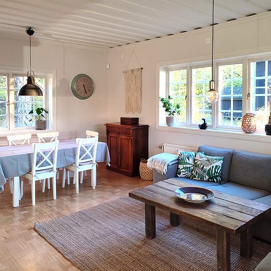 Lovely turn-of-the-century villa of 182 m2 in a nice and quiet area is for rent to private individuals, families, or businesses. Private jetty 100 m from the house where you can also keep your own boat moored. Wonderful for sun and swimming, or ice fishing and ice skating. Large and lovely natural plot of approx. 9,000 m2, perfect for play and activities and with a fantastic mushroom-foraging forest right around the corner. The plot has berry bushes, fruit trees and a vegetable patch. The villa is a short walk from the Ängsjö outdoor recr...