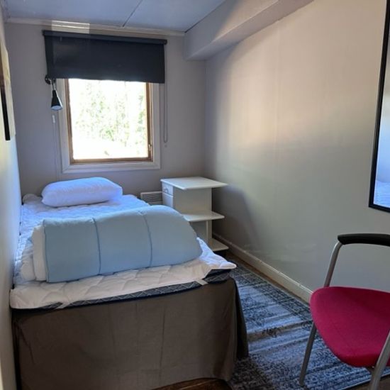 Sörbäcken Here you have a cozy house on a forest plot - Quiet, private accommodation Rented out to companies. - About 5 minutes to the center by car - Large parking facilities with engine heater - Nice recreation, fishing, jogging, hiking, skiing - Patio with fireplace - 4 cozy & personal bedrooms with 5 beds - Fully equipped kitchen - Living room with TV - Broadband - Toilet with shower - Washing machine - Towels & bed linen can be arranged. Service fee for tenant: 952