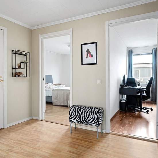 Welcome to this cosy and well-planned townhouse of 117 sqm in the quiet and child-friendly Lillsjö area. The house has 5 rooms, of which 4 are bedrooms. Here you’ll find a smart layout with four spacious bedrooms on the upper floor and a bathroom that will be renovated before occupancy. The entrance level accommodates a pleasant kitchen, an airy living room and a fully tiled bathroom with a laundry area. An air-to-air heat pump provides a comfortable indoor climate year-round. The area is characterized by its proximity to nature, schools and...