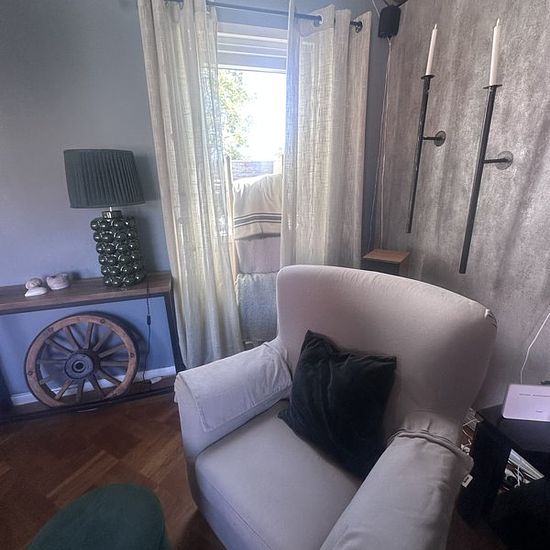 Part of a social and charming house with large spaces for rent for 1 year or according to agreement. 2 floors, kitchen, living room downstairs and 3 bedrooms upstairs. Kvikk kitchen with large floor-to-ceiling windows that provide lovely natural light and views, and an open floor plan with dining area and bar table. 3 bedrooms on the second floor. Large sheltered outdoor areas in different sun exposures. Partly furnished. Personal decorations and some crockery will be removed. All according to agreement. Good internet. Nice neighbors...