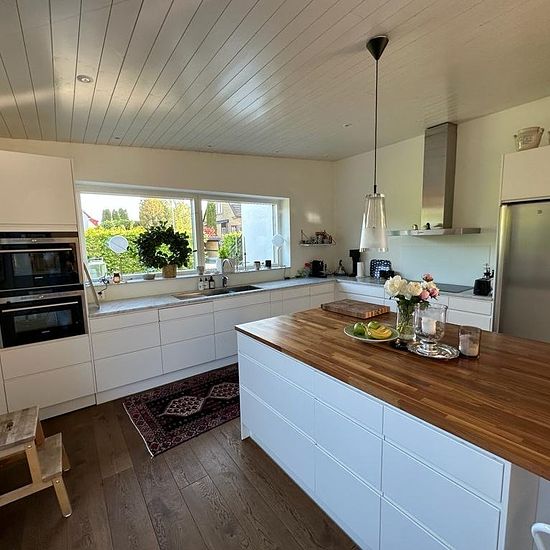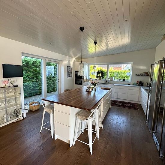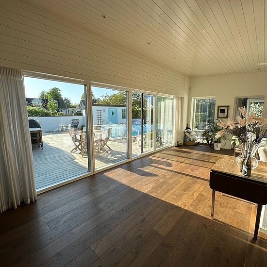 We are renting out our house in the old part of Lomma (100m from the sea) from the end of August until summer 2026 due to work abroad. We believe the house suits a family with slightly older children as the master bedroom is on the ground floor and two bedrooms are on the upper floor. There are a total of 4 bedrooms (one we use as a study), a large kitchen/dining room/living room, a TV lounge on the upper floor, and a basement with a guest room, bathroom, and sauna. Cozy garden with large wooden deck and pool facing west. Garage and storage....