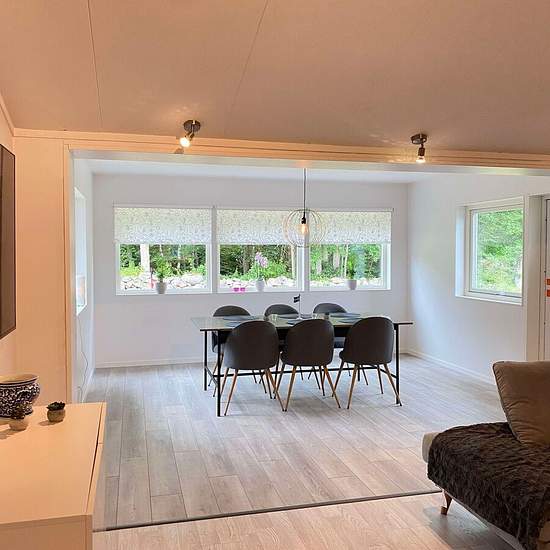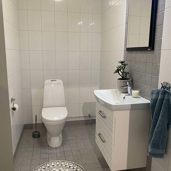 Newly renovated accommodation with a modern style. The property has an open-plan layout with kitchen, living room and dining room. Three bedrooms: one bedroom with a double bed, bedroom 2 with two beds, bedroom 3 with one bed. A larger bathroom with shower, washing machine and tumble dryer, as well as a smaller bathroom with a toilet. The price is stated as cold rent. Available for rent for short or long periods. Service fee for tenant: 952