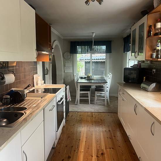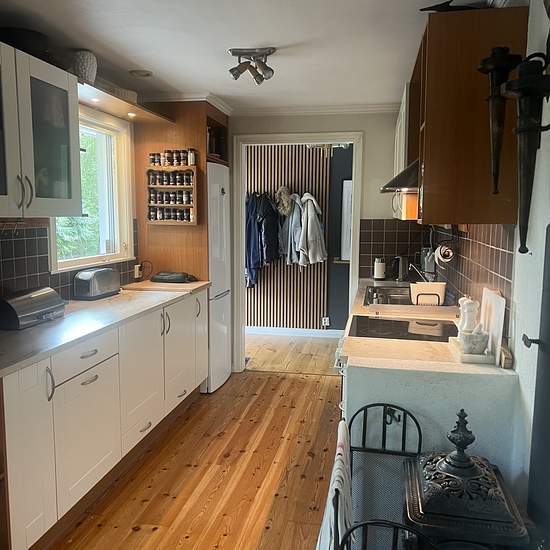 Villa ca 15 min utanför Norrtälje. Lugnt område. Egentligen trädgård. Två stora sovrum och ett mindre. Två badrum. Serviceavgift för hyresgäst: 892