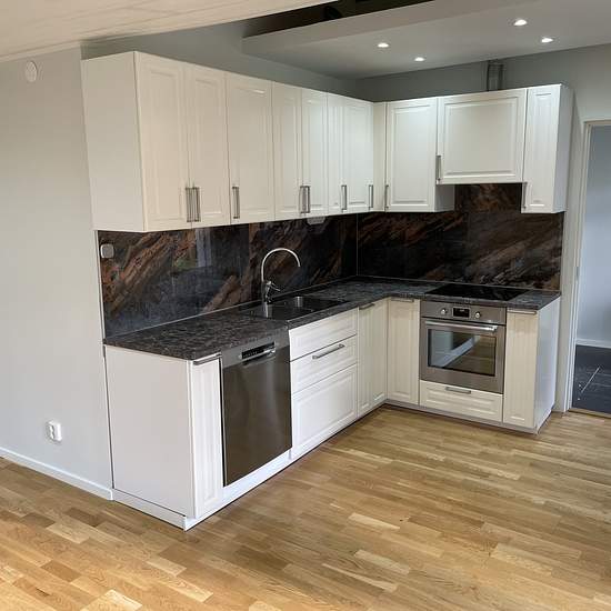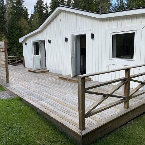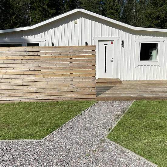 I have a 125-square-meter house that was built in 2022. It is located in a natural setting with forests and lakes nearby. The house has three bedrooms, a living room, a kitchen with a large dining area, and two bathrooms with underfloor heating — one with a shower and the other with a two-person whirlpool bathtub. Both bathrooms have a toilet and underfloor heating. There is a laundry room with a washing machine and a tumble dryer. The house has an air-to-water heat pump. In front of the house there is a large deck and several parking spaces...