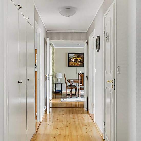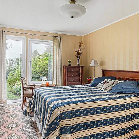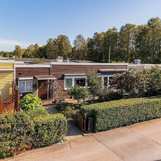 Welcome to a well-designed and pleasant house with a glass-enclosed patio and a leafy garden facing sunny southeast. The home offers generous space, plenty of storage and several outdoor seating areas that create a natural extension of the living space. Already in the enclosed entrance you are greeted by a spacious hall with good storage options and access to a storage room. The kitchen is large and functional with space for a substantial dining set. From the dining area you have a view of the front where plantings and greenery provide a p...