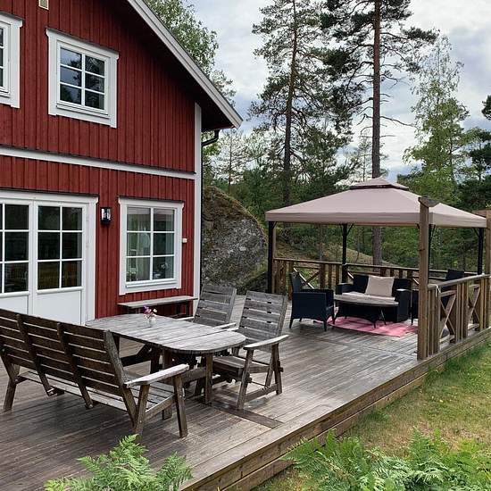 Rural modern cottage with views over Lake Åländern and access to a private bathing spot. It sleeps five, distributed across three separate rooms, two of which have double beds. The house includes a living room, a kitchen with a seating area, a patio, a bathroom with a sauna, and a large lovely terrace with evening sun. The house is approximately 120 m² and was built in 2010. There is ample space for socializing both indoors and outdoors. Welcome to this fantastic and peaceful place. Internet is installed in the property. A subscription can ...